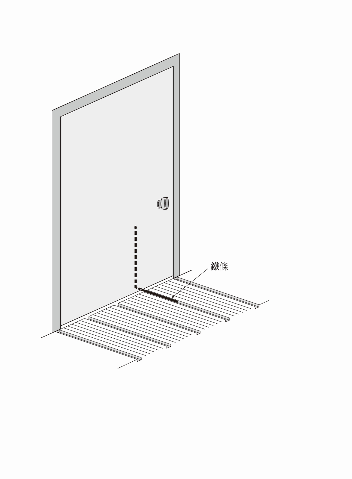 「因为当铁条卡进木板的缝隙时,它的角度就被固定住了。门是以铰链为中心,沿着弧线开合的对吧?如果铁条没有卡在地板上,当门被打开九十度时,铁条也会跟着旋转九十度。但现在,铁条被夹在地板缝隙中,角度无法改变。因此它无法随着门的开关移动,而是直接卡死在原地。被固定住的铁条,反过来锁住了门,使其完全无法动弹。」